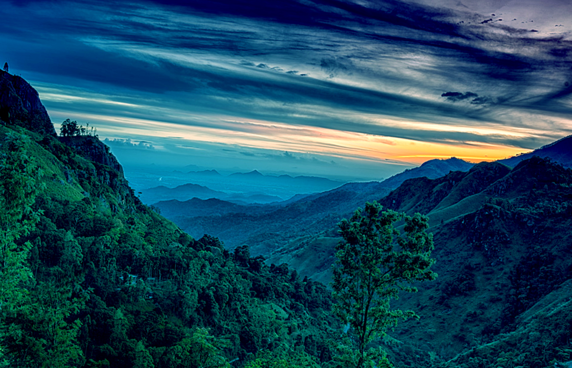 The area has a rich bio-diversity, dense with numerous varieties of flora and fauna. Ella is surrounded by hills covered with cloud forests and tea plantations. The town has a cooler climate than surrounding lowlands, due to its elevation. The Ella Gap allows views across the southern plains of Sri Lanka.